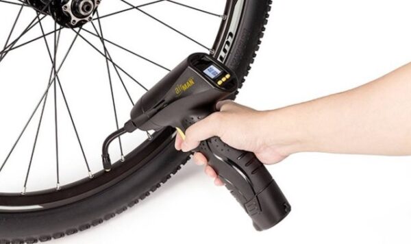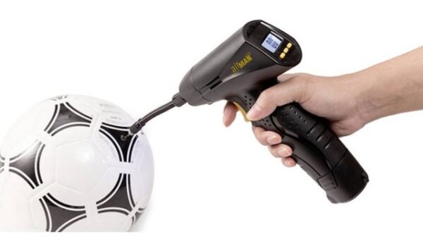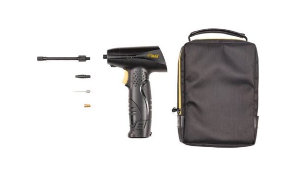 Je kan de druk voor het oppompen instellen en er volgt automatische uitschakeling van de compressor wanneer de druk is bereikt. De luchtpomp werkt op een oplaadbare accu of via een 230 volt aansluiting.