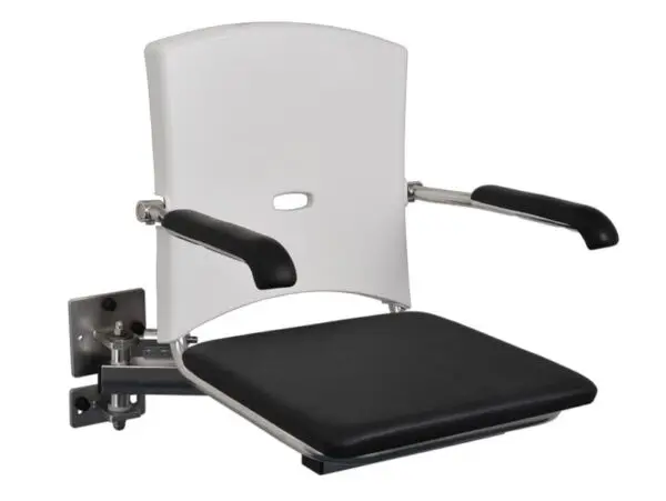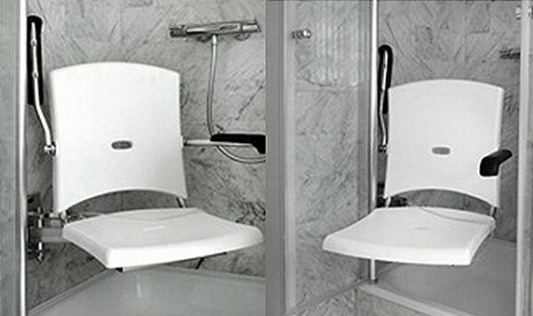 Een hoge rand in de douchecabine kan lastig zijn bij het in en uitstappen. Het douchezitje is zowel rechts als links draaibaar en heeft een positievergrendeling. Je kunt buiten de douchecabine op het zitje plaatsnemen en vervolgens de douchecabine in draaien. De bestaande douchebak hoeft dus niet verwijderd te worden. De armleuningen zijn opklapbaar.