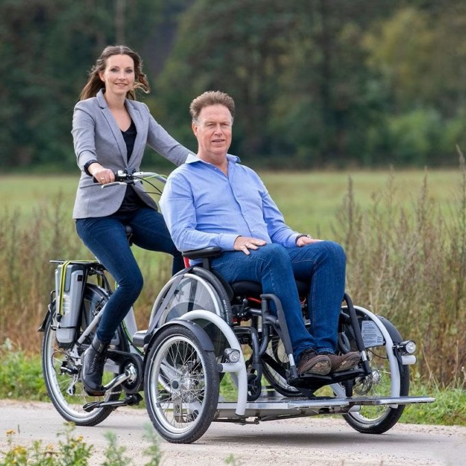 De VeloPlus rolstoeltransportfiets is ontwikkeld om mensen, die in hun eigen rolstoel blijven zitten, per fiets te vervoeren. Er is geen transfer nodig tussen de rolstoel en de fiets. De kantelbare oprijplaat maakt het mogelijk de handbewogen rolstoel eenvoudig op de rolstoelfiets te rijden en deze daarna met de rolstoelvergrendeling goed vast te zetten. De VeloPlus is standaard geschikt voor een passagier inclusief rolstoel tot max. 140 kg.