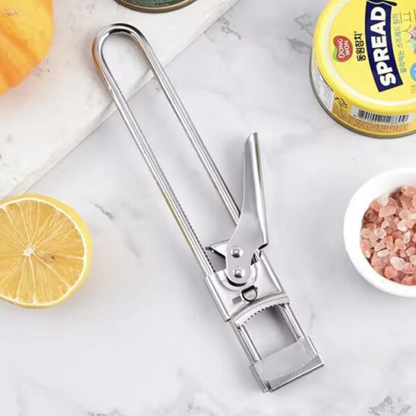 Door de hendel van deze roestvrij stalen pot-opener te openen en de klem op de juiste maat te schuiven kun je met weinig kracht de hendel sluiten en dop of deksel open draaien. Met de andere hand houd je fles of pot vast. Er is dus wel enige handfunctie nodig, maar veel kracht hoef je niet te zetten. Door het ontwerp past deze pot-opener makkelijk tussen het bestek in de keukenla.