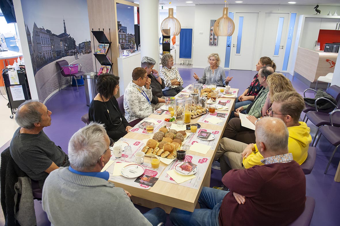 Na het uitwisselen van de eerste nieuwsgierige blikken en begroetingen zocht iedereen een plek aan de tafel. Daarbij schoven ook twee teamleden van de Bloedbank aan, die actief deelnamen aan de dialoog en antwoorden konden geven op vragen over de Bloedbank. De ervaren dialoogleider Liesbeth vertelde de deelnemers aan het begin van de dialoog dat het voor de dialoog belangrijk is om naar elkaar te blijven luisteren. “Zo kun je voor jezelf best wat ruimte nemen, als je óók een ander veel ruimte blijft geven.”
