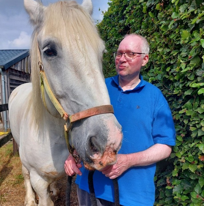 Pip Hoogendoorn (58 jaar, Eindhoven) kreeg in 2016 de officiële diagnose DVN in Maastricht. Zijn dagbestedingsactiviteiten houden hem op de been én onder de mensen: “Die paarden geven me veel energie. Zo fijn om buiten bezig te zijn." Pip deelt met ons zijn ervaringen in het zoeken naar een dagelijkse leven dat het beste past bij zijn beperkingen.