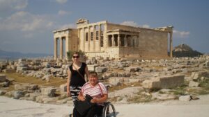Uiteindelijk lukt het Pia na drie maanden op de IC toch om van de beademing af te komen. Zij kan naar het revalidatiecentrum, maar is dan nog wel volledig verlamd. “Ik kon niks: ik moest weer leren zitten, ik kon niet zelfstandig eten. In eerste instantie moest ik dus met alles geholpen worden. Na verloop van tijd komen er langzamerhand steeds meer vrijheden bij. Om weer zelf te kunnen eten, zelfstandig naar het toilet te kunnen, voelde geweldig! Uiteindelijk heb ik mij in het revalidatiecentrum prima vermaakt. Ik heb daar ook grappen uitgehaald. Eén waar ik nog steeds heel trots op ben. Dat was toen ik mijn fysiotherapeut flink in de maling had genomen” lacht Pia. “We hadden gewoon ontzettend veel lol onderling. Als er iemand weg ging, gaven we een afscheidsfeest.