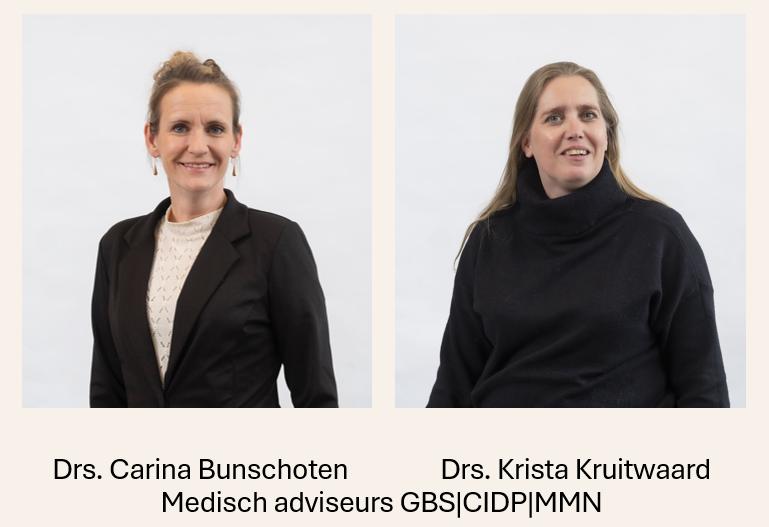 Per 1 januari 2026 zijn twee nieuwe medisch adviseurs benoemd voor diagnosegroep GBS|CIDP|MMN! Drs. Krista Kuitwaard volgde per die datum prof. dr. Pieter van Doorn op. Eveneens trad drs. Carina Bunschoten aan als adviseur. Wie zijn onze nieuwe medisch adviseurs?