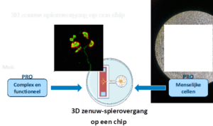 In het LUMC hebben ze nu een driedimensionaal model van een zenuw-spierovergang op een chip gemaakt.