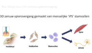 Dat gebeurt door van menselijke huidcellen stamcellen te maken en die op te kweken tot respectievelijk spiercellen en zenuwcellen.
