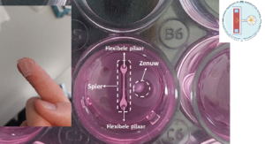 Door de spiervezel aan beide zijden te bevestigen aan een flexibele pilaar, kan de beweging van de spiervezel zichtbaar gemaakt worden.