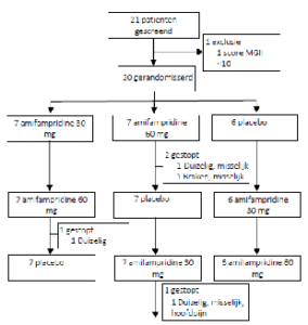 In het eerste deel van het onderzoek kregen de deelnemers aan het onderzoek gedurende een week alleen pyridostigmine of een placebo (nepmiddel) en de week erna andersom. Noch de patiënt noch de behandelend arts wist wie welk middel kreeg. In de tweede fase van het onderzoek mochten de deelnemers de pyridostigmine weer gebruiken zoals normaal. In dit deel werden er twee verschillende doses van de amifampridine en ook een placebo onderzocht.