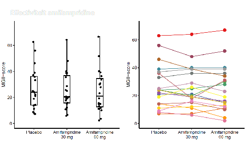 De uitkomsten laten zien dat Amifampridine geen significante verbetering geeft op MG klachten.