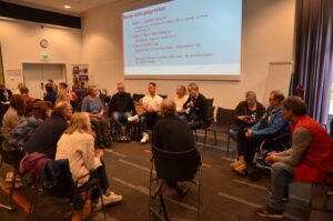 Na de updates van de artsen werden drie groepen gemaakt. Bij elke groep zat een arts of ergotherapeut. In deze ronde tafelgesprekken konden mensen vragen stellen aan deze deskundigen over verschillende onderwerpen.