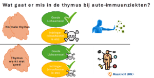 De thymus (zwezerik) speelt een belangrijke rol in de vorming van ons afweersysteem. Als de thymus niet goed werkt, worden “indringers” niet voldoende herkend en kunnen ook goede lichaamscellen aangezien worden als indringers. De thymus kan ook een tumor ontwikkelen, een zogenoemd thymoom of thymuscarcinoom. Patiënten met myasthenia gravis hebben een hogere kans om een thymoom te ontwikkelen.