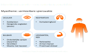 Dr. Lipka begon met een korte inleiding over de symptomen van myasthenie en de gangbare behandelingen. Myasthenie is een auto-immuunziekte, waarbij het lichaam antistoffen maakt tegen lichaamseigen stoffen. In dit geval zijn dat de prikkelreceptoren op de spieren, waardoor de prikkels niet overkomen en er dus sprake zal zijn van spierzwakte.