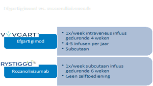 De nu beschikbare FcRn-blokkers zijn efgartigimod en rozanolixizumab. Ook voor deze medicijnen geldt dat de veiligheid en effectiviteit is aangetoond. De manier van toedienen verschilt enigszins.